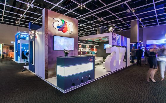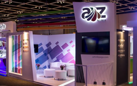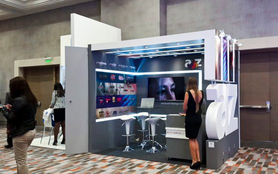 La segmentación y repetición de las piezas que acompañan la escala cromática corporativa permite darle un lugar importante a los diferentes aspectos a comunicar. Un panel backlightcubre el fondo generando un punto de atracción que establece la relación directa entre identidad y los contenidos expuestos.