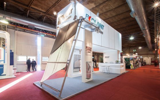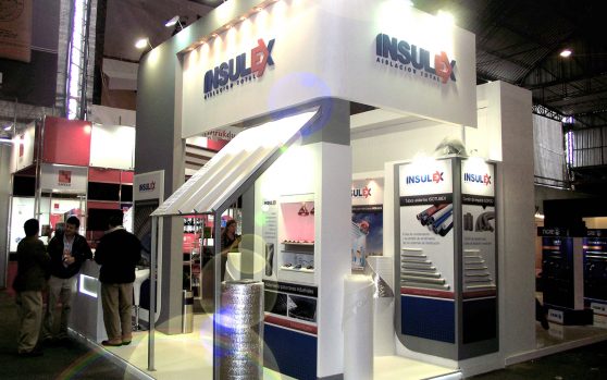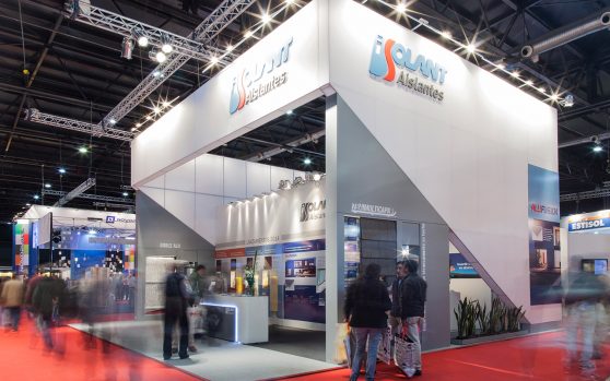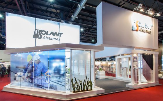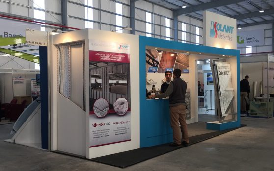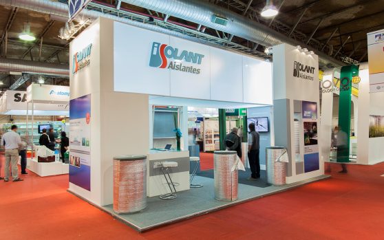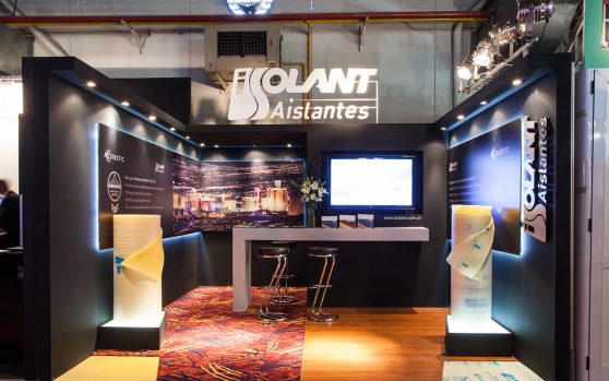 Isolant nos plantea el desafío de presentar en stands amplios y de gran altura.  Una propuesta en donde los protagonistas sean los aislantes, pero también que se permita una fluida circulación y cómoda estadía del visitante gracias a los espacios de estar.